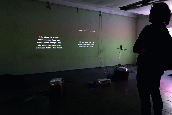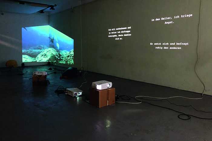 "Die einzelnen Arbeiten in ihrer dräuenden Uneindeutigkeit akkumulieren zu einer irrealen Gesamtstimmung, in der die Gesetze der Logik wie ausgehebelt erscheinen. Man fühlt sich ein wenig schutzlos hier im Schutzraum. (...) Die Membran ist dünn zwischen Traum und Welt, zwischen Keller und Erdgeschoss. (...) Namenlose Objekte, die grotesk geheimnisvoll im Raum herumstehen, als würden sie schon lange auf bessere Zeiten warten. Das Video einer stürmischen See in der Schleuse zum Fluchtweg, vor deren gewaltiger Kraft wir Menschen uns nur klein und verloren fühlen können."