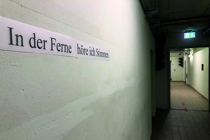 "Die einzelnen Arbeiten in ihrer dräuenden Uneindeutigkeit akkumulieren zu einer irrealen Gesamtstimmung, in der die Gesetze der Logik wie ausgehebelt erscheinen. Man fühlt sich ein wenig schutzlos hier im Schutzraum. (...) Die Membran ist dünn zwischen Traum und Welt, zwischen Keller und Erdgeschoss. (...) Namenlose Objekte, die grotesk geheimnisvoll im Raum herumstehen, als würden sie schon lange auf bessere Zeiten warten. Das Video einer stürmischen See in der Schleuse zum Fluchtweg, vor deren gewaltiger Kraft wir Menschen uns nur klein und verloren fühlen können."